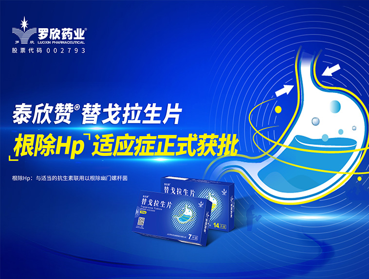 羅欣藥業創(chuàng)新藥替戈拉生片(商品名:泰欣贊?)新適應癥“與適當的抗生素聯用以根除幽門螺桿菌”獲批上市